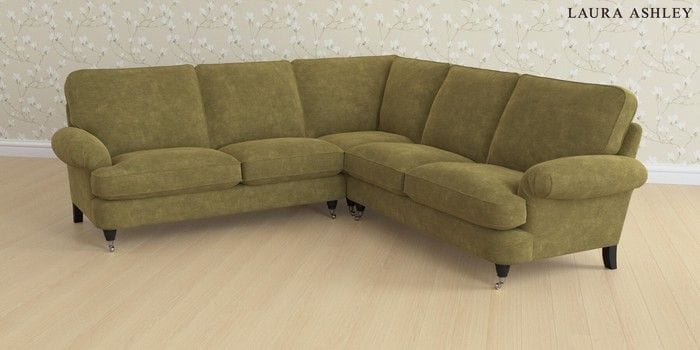 6.12.1 Buy Beaumaris by Laura Ashley Medium Corner Sofa - Universal Alwyn Velvet Olive Green Low Chrome Castor - Black from the Laura Ashley online shop Click here to use our website with more accessibility support, for example screen readers