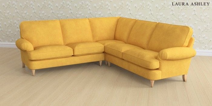 6.12.1 Buy Beaumaris by Laura Ashley Medium Corner Sofa - Universal Bainton Ochre Yellow Low Turned - Light Oak from the Laura Ashley online shop Click here to use our website with more accessibility support, for example screen readers