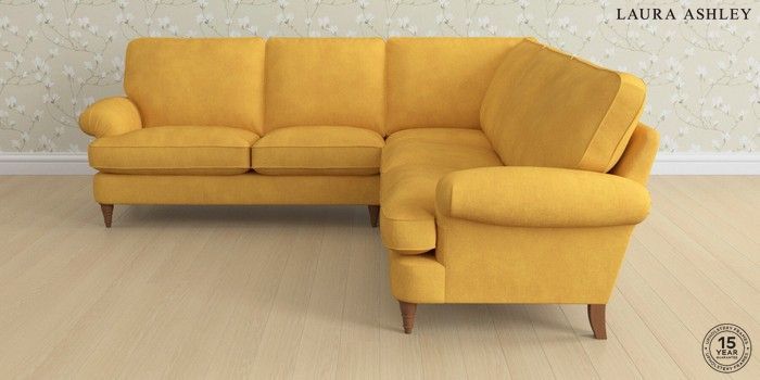 6.12.1 Buy Beaumaris by Laura Ashley Medium Corner Sofa - Universal Bainton Ochre Yellow Low Turned - Teak from the Laura Ashley online shop Click here to use our website with more accessibility support, for example screen readers