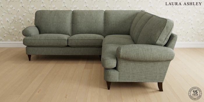6.12.1 Buy Beaumaris by Laura Ashley Medium Corner Sofa - Universal Bainton Sage Green Low Turned - Chestnut from the Laura Ashley online shop Click here to use our website with more accessibility support, for example screen readers