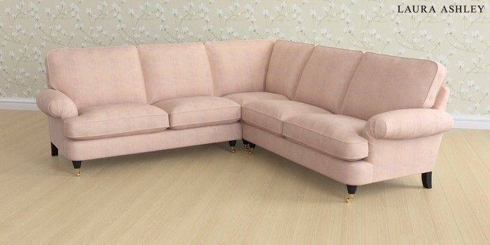 6.12.1 Buy Beaumaris by Laura Ashley Medium Corner Sofa - Universal Edwin Chenille Blush Pink Low Brass Castor - Black from the Laura Ashley online shop Click here to use our website with more accessibility support, for example screen readers
