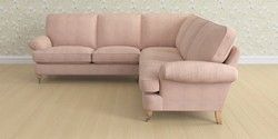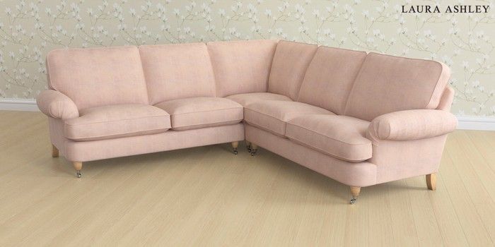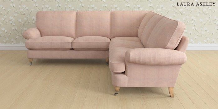 6.12.1 Buy Beaumaris by Laura Ashley Medium Corner Sofa - Universal Edwin Chenille Blush Pink Low Chrome Castor - Light Oak from the Laura Ashley online shop Click here to use our website with more accessibility support, for example screen readers