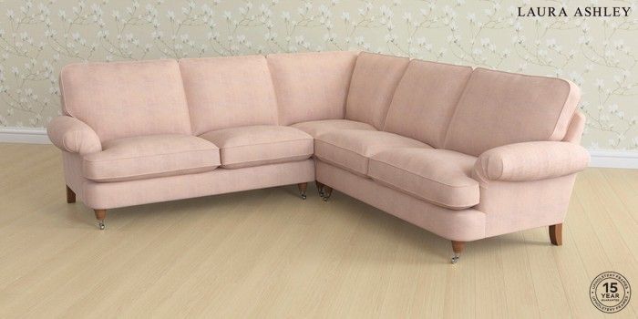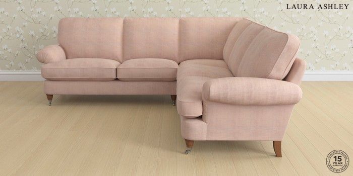 6.12.1 Buy Beaumaris by Laura Ashley Medium Corner Sofa - Universal Edwin Chenille Blush Pink Low Chrome Castor - Teak from the Laura Ashley online shop Click here to use our website with more accessibility support, for example screen readers