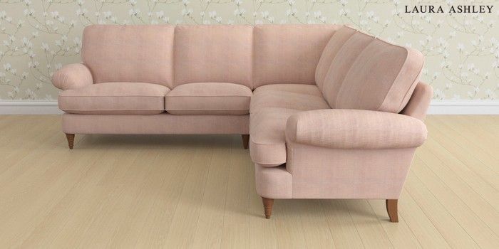 6.12.1 Buy Beaumaris by Laura Ashley Medium Corner Sofa - Universal Edwin Chenille Blush Pink Low Turned - Teak from the Laura Ashley online shop Click here to use our website with more accessibility support, for example screen readers
