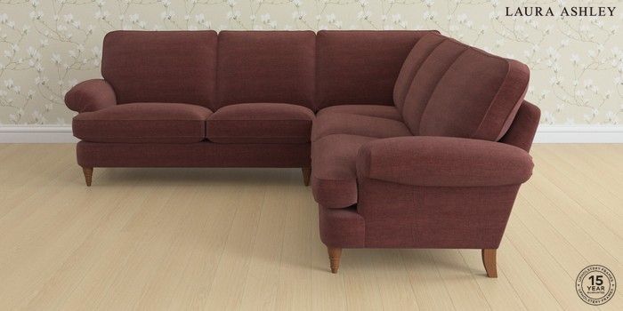 6.12.1 Buy Beaumaris by Laura Ashley Medium Corner Sofa - Universal Edwin Chenille Burgundy Red Low Turned - Teak from the Laura Ashley online shop Click here to use our website with more accessibility support, for example screen readers