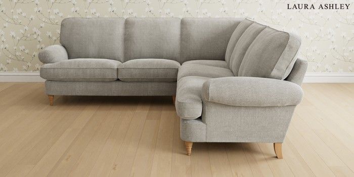 6.12.1 Buy Beaumaris by Laura Ashley Medium Corner Sofa - Universal Edwin Chenille Silver Grey Low Turned - Light Oak from the Laura Ashley online shop Click here to use our website with more accessibility support, for example screen readers