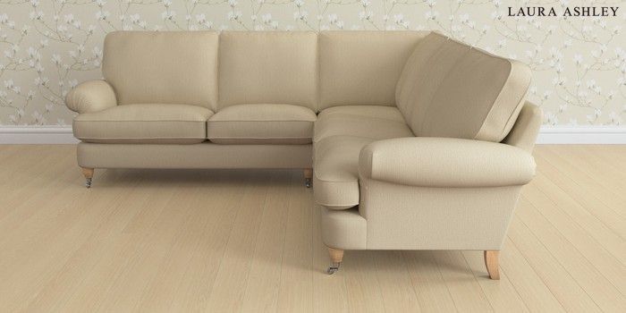 6.12.1 Buy Beaumaris by Laura Ashley Medium Corner Sofa - Universal Edwin Herringbone Natural Low Chrome Castor - Light Oak from the Laura Ashley online shop Click here to use our website with more accessibility support, for example screen readers