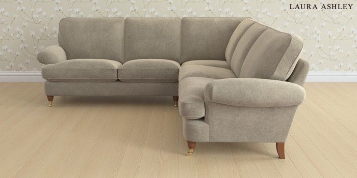 6.12.1 Buy Beaumaris by Laura Ashley Medium Corner Sofa - Universal Lundar Chenille Truffle Natural Low Brass Castor - Teak from the Laura Ashley online shop Click here to use our website with more accessibility support, for example screen readers