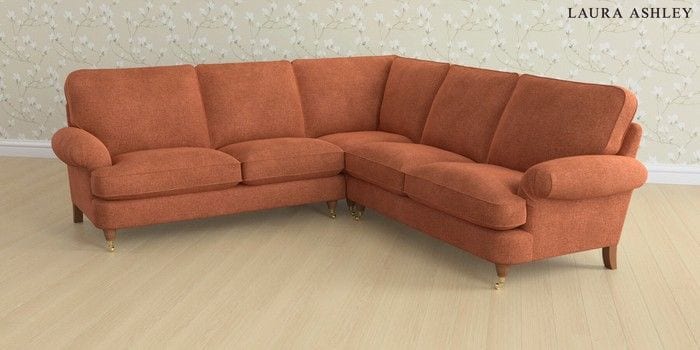 6.12.1 Buy Beaumaris by Laura Ashley Medium Corner Sofa - Universal Nantmor Rust Orange Low Brass Castor - Teak from the Laura Ashley online shop Click here to use our website with more accessibility support, for example screen readers