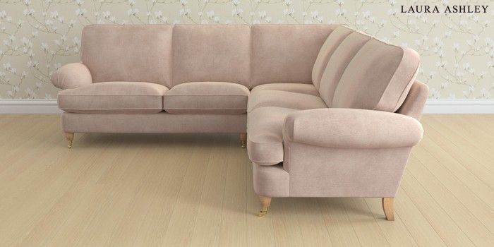 6.12.1 Buy Beaumaris by Laura Ashley Medium Corner Sofa - Universal Orla Chalk Pink Low Brass Castor - Light Oak from the Laura Ashley online shop Click here to use our website with more accessibility support, for example screen readers
