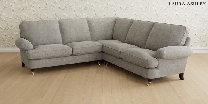 6.12.13 Buy Beaumaris by Laura Ashley Medium Corner Sofa - Universal Orla Pale Steel Grey Low Brass Castor - Chestnut from the Laura Ashley online shop Click here to use our website with more accessibility support, for example screen readers