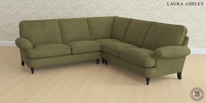 6.12.1 Buy Beaumaris by Laura Ashley Medium Corner Sofa - Universal Sinclair Cord Ivy Green Low Turned - Black from the Laura Ashley online shop Click here to use our website with more accessibility support, for example screen readers