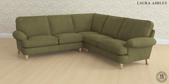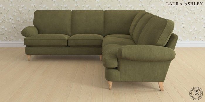6.12.1 Buy Beaumaris by Laura Ashley Medium Corner Sofa - Universal Sinclair Cord Ivy Green Low Turned - Light Oak from the Laura Ashley online shop Click here to use our website with more accessibility support, for example screen readers