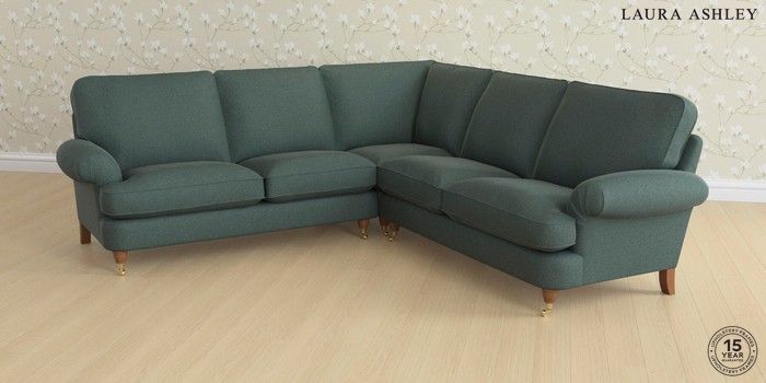 6.12.1 Buy Beaumaris by Laura Ashley Medium Corner Sofa - Universal Wooton Forest Green Low Brass Castor - Teak from the Laura Ashley online shop Click here to use our website with more accessibility support, for example screen readers