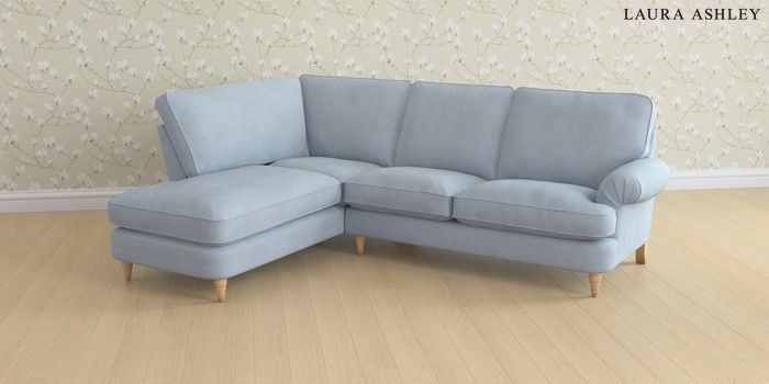 6.12.1 Buy Beaumaris by Laura Ashley Medium Sofa Chaise - Left Hand Ailsworth Newport Blue Low Turned - Light Oak from the Laura Ashley online shop Click here to use our website with more accessibility support, for example screen readers