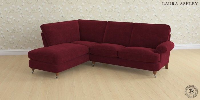 6.12.1 Buy Beaumaris by Laura Ashley Medium Sofa Chaise - Left Hand Alwyn Velvet Burgundy Red Low Chrome Castor - Teak from the Laura Ashley online shop Click here to use our website with more accessibility support, for example screen readers