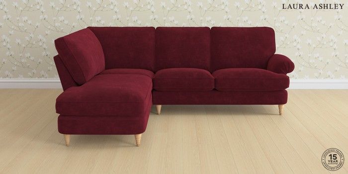 6.12.1 Buy Beaumaris by Laura Ashley Medium Sofa Chaise - Left Hand Alwyn Velvet Burgundy Red Low Turned - Light Oak from the Laura Ashley online shop Click here to use our website with more accessibility support, for example screen readers