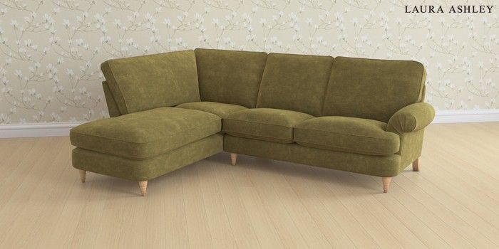 6.12.1 Buy Beaumaris by Laura Ashley Medium Sofa Chaise - Left Hand Alwyn Velvet Olive Green Low Turned - Light Oak from the Laura Ashley online shop Click here to use our website with more accessibility support, for example screen readers