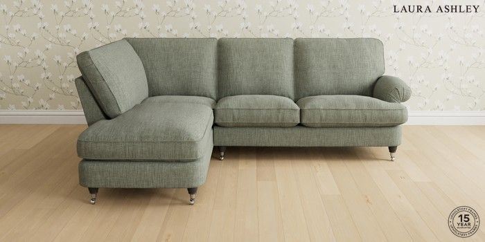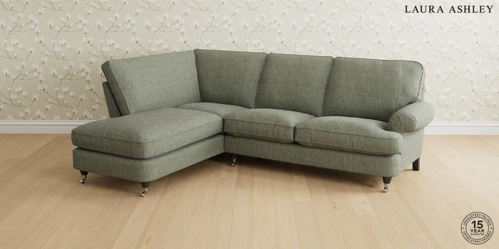 6.12.1 Buy Beaumaris by Laura Ashley Medium Sofa Chaise - Left Hand Bainton Sage Green Low Chrome Castor - Black from the Laura Ashley online shop Click here to use our website with more accessibility support, for example screen readers