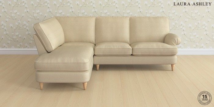 6.12.1 Buy Beaumaris by Laura Ashley Medium Sofa Chaise - Left Hand Birchgrove Check Oatmeal Natural Low Turned - Light Oak from the Laura Ashley online shop Click here to use our website with more accessibility support, for example screen readers