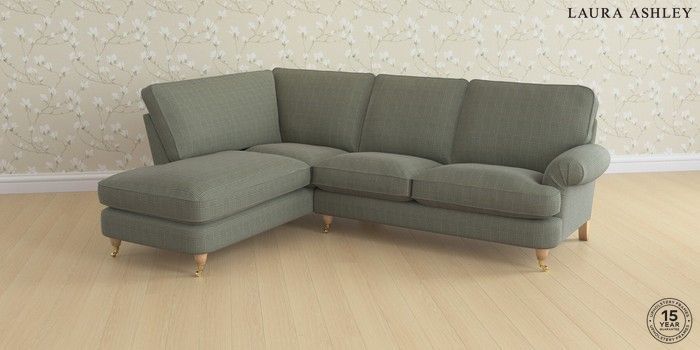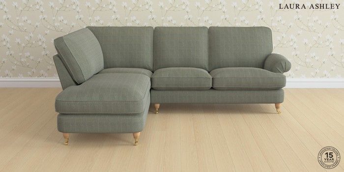 6.12.1 Buy Beaumaris by Laura Ashley Medium Sofa Chaise - Left Hand Birchgrove Check Olive Green Low Brass Castor - Light Oak from the Laura Ashley online shop Click here to use our website with more accessibility support, for example screen readers