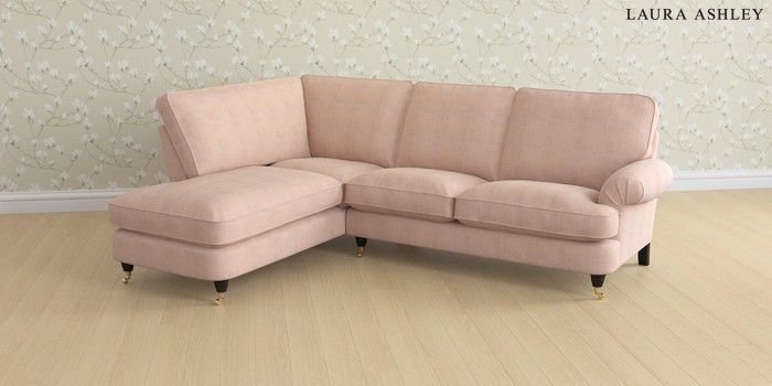 6.12.1 Buy Beaumaris by Laura Ashley Medium Sofa Chaise - Left Hand Edwin Chenille Blush Pink Low Brass Castor - Black from the Laura Ashley online shop Click here to use our website with more accessibility support, for example screen readers