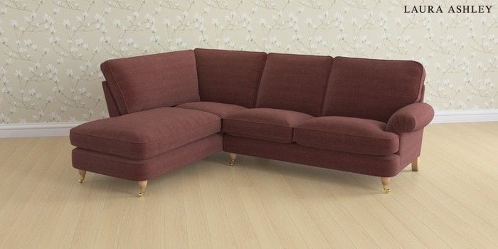 6.12.1 Buy Beaumaris by Laura Ashley Medium Sofa Chaise - Left Hand Edwin Chenille Burgundy Red Low Brass Castor - Light Oak from the Laura Ashley online shop Click here to use our website with more accessibility support, for example screen readers