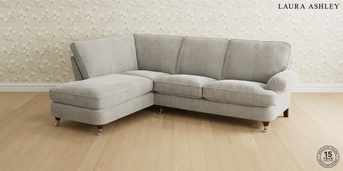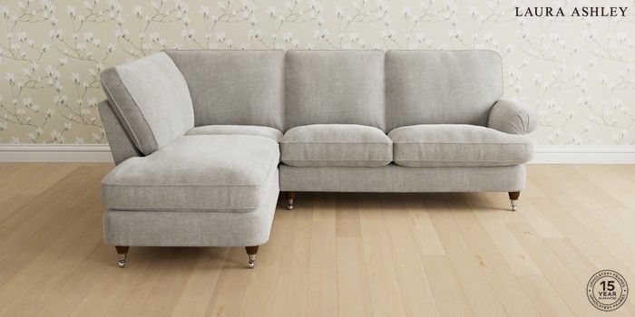 6.12.1 Buy Beaumaris by Laura Ashley Medium Sofa Chaise - Left Hand Edwin Chenille Silver Grey Low Chrome Castor - Teak from the Laura Ashley online shop Click here to use our website with more accessibility support, for example screen readers