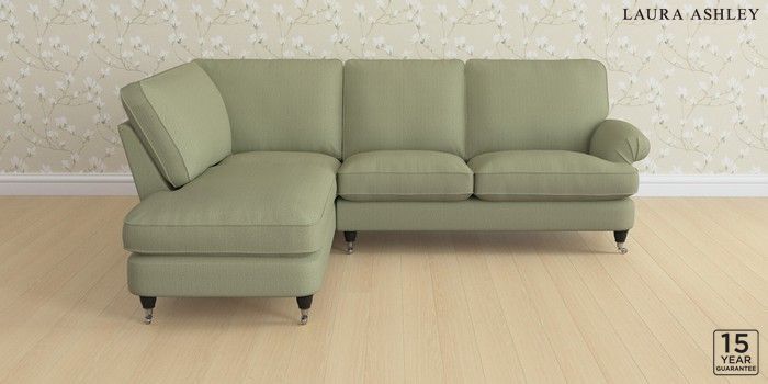 6.12.1 Buy Beaumaris by Laura Ashley Medium Sofa Chaise - Left Hand Edwin Herringbone Hedgerow Green Low Chrome Castor - Black from the Laura Ashley online shop Click here to use our website with more accessibility support, for example screen readers