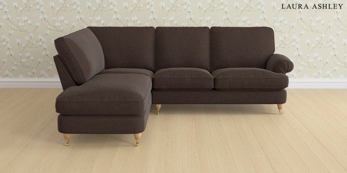 6.12.1 Buy Beaumaris by Laura Ashley Medium Sofa Chaise - Left Hand Harley Chestnut Brown Low Brass Castor - Light Oak from the Laura Ashley online shop Click here to use our website with more accessibility support, for example screen readers
