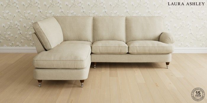 6.12.1 Buy Beaumaris by Laura Ashley Medium Sofa Chaise - Left Hand Anneliese Natural Low Chrome Castor - Teak from the Laura Ashley online shop Click here to use our website with more accessibility support, for example screen readers