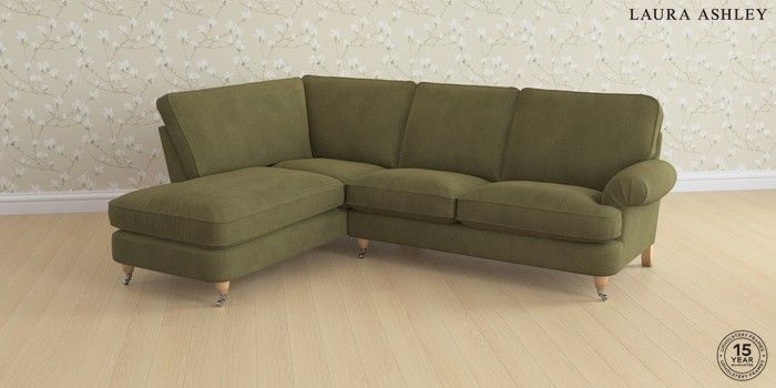 6.12.1 Buy Beaumaris by Laura Ashley Medium Sofa Chaise - Left Hand Sinclair Cord Ivy Green Low Chrome Castor - Light Oak from the Laura Ashley online shop Click here to use our website with more accessibility support, for example screen readers