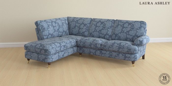 6.12.13 Buy Beaumaris by Laura Ashley Medium Sofa Chaise - Left Hand Tamara Dusky Seaspray Blue Low Brass Castor - Chestnut from the Laura Ashley online shop Click here to use our website with more accessibility support, for example screen readers