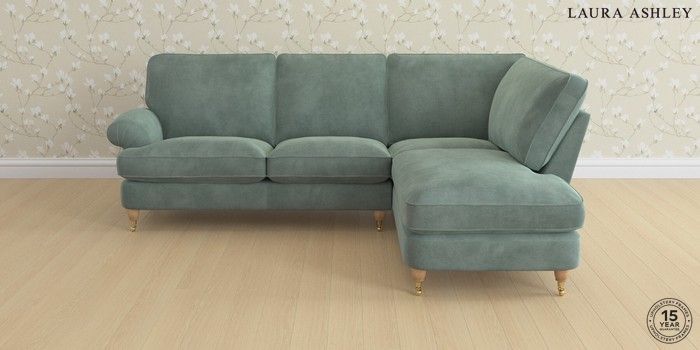 6.12.1 Buy Beaumaris by Laura Ashley Medium Sofa Chaise - Right Hand Ailsworth Fern Green Low Brass Castor - Light Oak from the Laura Ashley online shop Click here to use our website with more accessibility support, for example screen readers