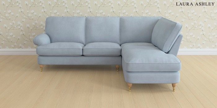 6.12.1 Buy Beaumaris by Laura Ashley Medium Sofa Chaise - Right Hand Ailsworth Newport Blue Low Brass Castor - Light Oak from the Laura Ashley online shop Click here to use our website with more accessibility support, for example screen readers