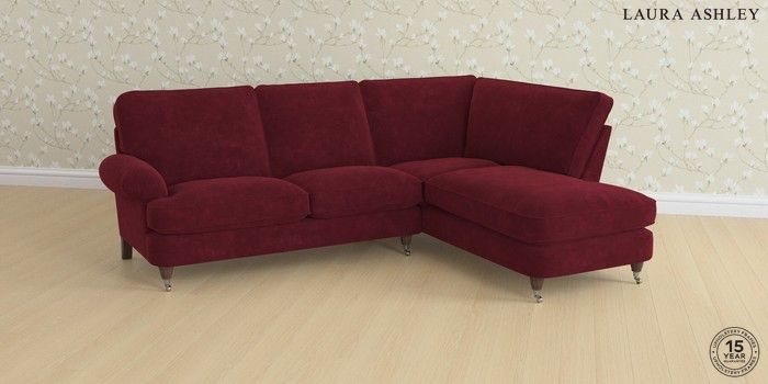 6.12.1 Buy Beaumaris by Laura Ashley Medium Sofa Chaise - Right Hand Alwyn Velvet Burgundy Red Low Chrome Castor - Chestnut from the Laura Ashley online shop Click here to use our website with more accessibility support, for example screen readers