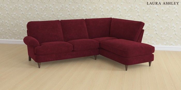 6.12.1 Buy Beaumaris by Laura Ashley Medium Sofa Chaise - Right Hand Alwyn Velvet Burgundy Red Low Turned - Chestnut from the Laura Ashley online shop Click here to use our website with more accessibility support, for example screen readers