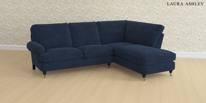 6.12.1 Buy Beaumaris by Laura Ashley Medium Sofa Chaise - Right Hand Alwyn Velvet Midnight Navy Low Chrome Castor - Black from the Laura Ashley online shop Click here to use our website with more accessibility support, for example screen readers