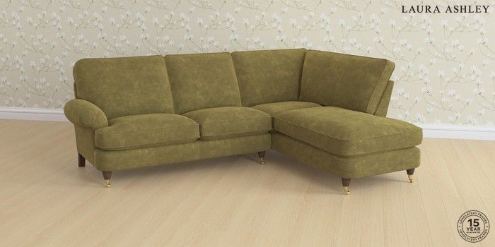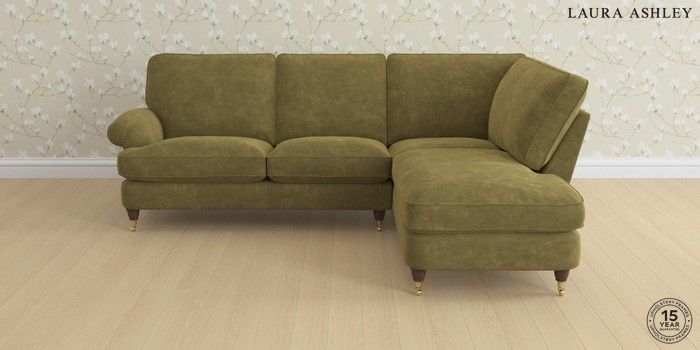 6.12.13 Buy Beaumaris by Laura Ashley Medium Sofa Chaise - Right Hand Alwyn Velvet Olive Green Low Brass Castor - Chestnut from the Laura Ashley online shop Click here to use our website with more accessibility support, for example screen readers