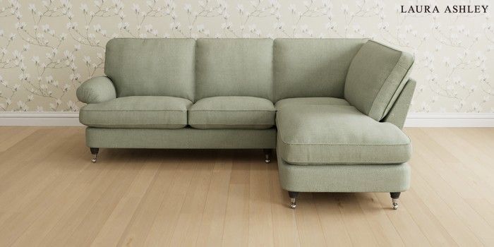 6.12.1 Buy Beaumaris by Laura Ashley Medium Sofa Chaise - Right Hand Anneliese Sage Green Low Chrome Castor - Black from the Laura Ashley online shop Click here to use our website with more accessibility support, for example screen readers