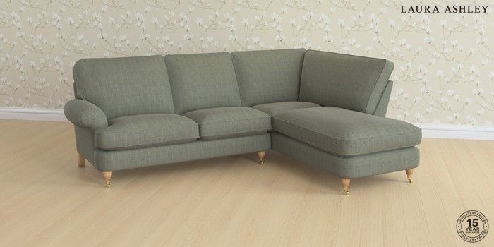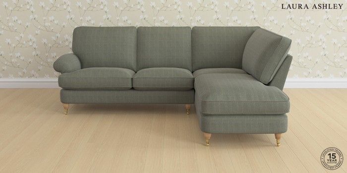 6.12.13 Buy Beaumaris by Laura Ashley Medium Sofa Chaise - Right Hand Birchgrove Check Olive Green Low Brass Castor - Light Oak from the Laura Ashley online shop Click here to use our website with more accessibility support, for example screen readers