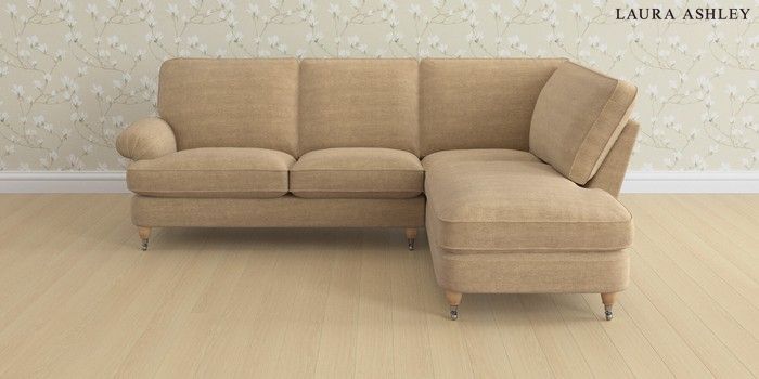 6.12.13 Buy Beaumaris by Laura Ashley Medium Sofa Chaise - Right Hand Edwin Chenille Gold Natural Low Chrome Castor - Light Oak from the Laura Ashley online shop Click here to use our website with more accessibility support, for example screen readers
