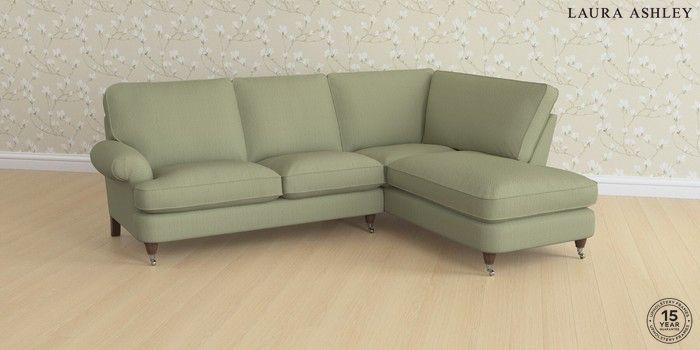 6.12.1 Buy Beaumaris by Laura Ashley Medium Sofa Chaise - Right Hand Edwin Herringbone Hedgerow Green Low Chrome Castor - Chestnut from the Laura Ashley online shop Click here to use our website with more accessibility support, for example screen readers