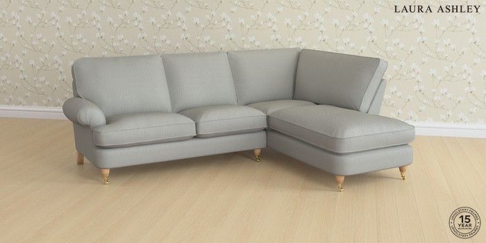 6.12.1 Buy Beaumaris by Laura Ashley Medium Sofa Chaise - Right Hand Edwin Herringbone Pale Steel Grey Low Brass Castor - Light Oak from the Laura Ashley online shop Click here to use our website with more accessibility support, for example screen readers