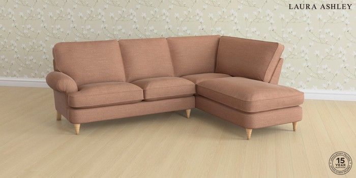 6.12.1 Buy Beaumaris by Laura Ashley Medium Sofa Chaise - Right Hand Kinsham Rust Orange Low Turned - Light Oak from the Laura Ashley online shop Click here to use our website with more accessibility support, for example screen readers