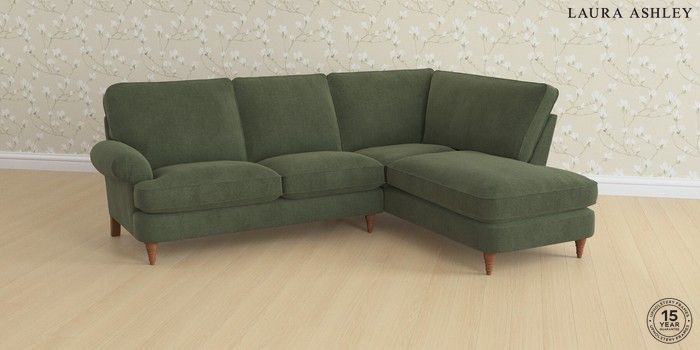 6.12.1 Buy Beaumaris by Laura Ashley Medium Sofa Chaise - Right Hand Lundar Chenille Ivy Green Low Turned - Teak from the Laura Ashley online shop Click here to use our website with more accessibility support, for example screen readers