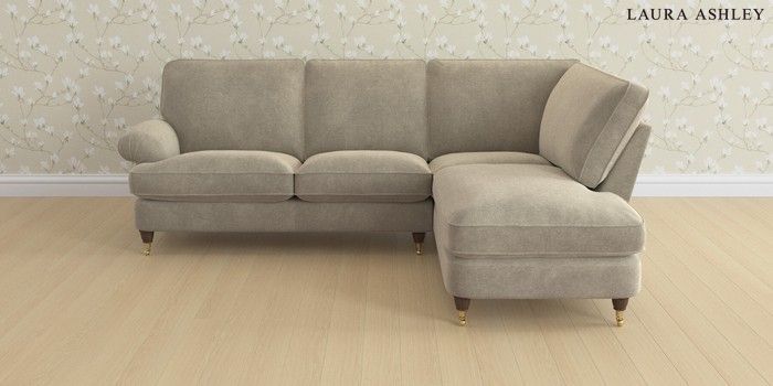 6.12.13 Buy Beaumaris by Laura Ashley Medium Sofa Chaise - Right Hand Lundar Chenille Truffle Natural Low Brass Castor - Chestnut from the Laura Ashley online shop Click here to use our website with more accessibility support, for example screen readers