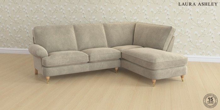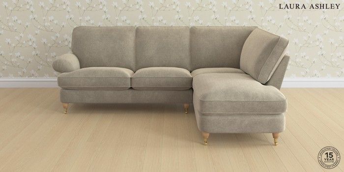 6.12.13 Buy Beaumaris by Laura Ashley Medium Sofa Chaise - Right Hand Lundar Chenille Truffle Natural Low Brass Castor - Light Oak from the Laura Ashley online shop Click here to use our website with more accessibility support, for example screen readers