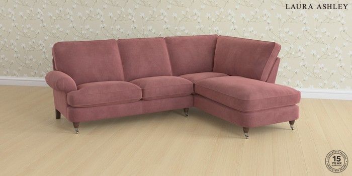 6.12.1 Buy Beaumaris by Laura Ashley Medium Sofa Chaise - Right Hand Peyton Plum Purple Low Chrome Castor - Chestnut from the Laura Ashley online shop Click here to use our website with more accessibility support, for example screen readers