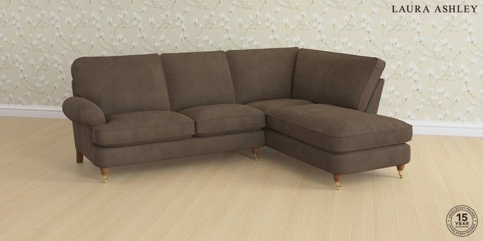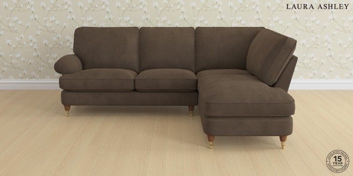 6.12.1 Buy Beaumaris by Laura Ashley Medium Sofa Chaise - Right Hand Sinclair Cord Chocolate Brown Low Brass Castor - Teak from the Laura Ashley online shop Click here to use our website with more accessibility support, for example screen readers